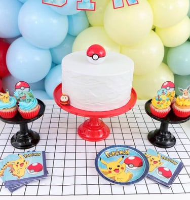Kids love spotting their favourite characters like Pikachu, Charmander, and Eevee on party supplies, and interactive games like “Pin the Tail on the Pokémon” or “Pokéball scavenger hunts” keep little trainers entertained.